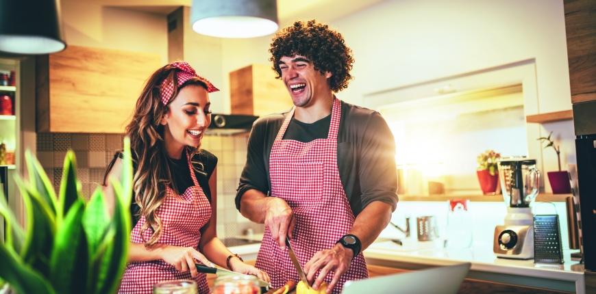 Oderwanie stanowiska przygotowywania posiłków od ściany i usytuowanie go w centrum sprawi, że kuchnia zyska na atrakcyjności. Efekt wzmocni dobrze zaplanowane światło.